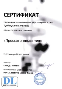 - 2016, Учебный центр «Dental Lessons», Казань. Семинар «Простая эндодонтия»